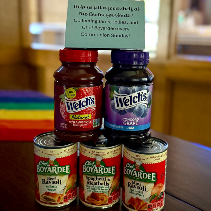 To assist the Center for Youth, on Communion Sundays, the first Sunday of the month, we will collect jams, jellies, and Chef Boyardee canned pastas for CYF.